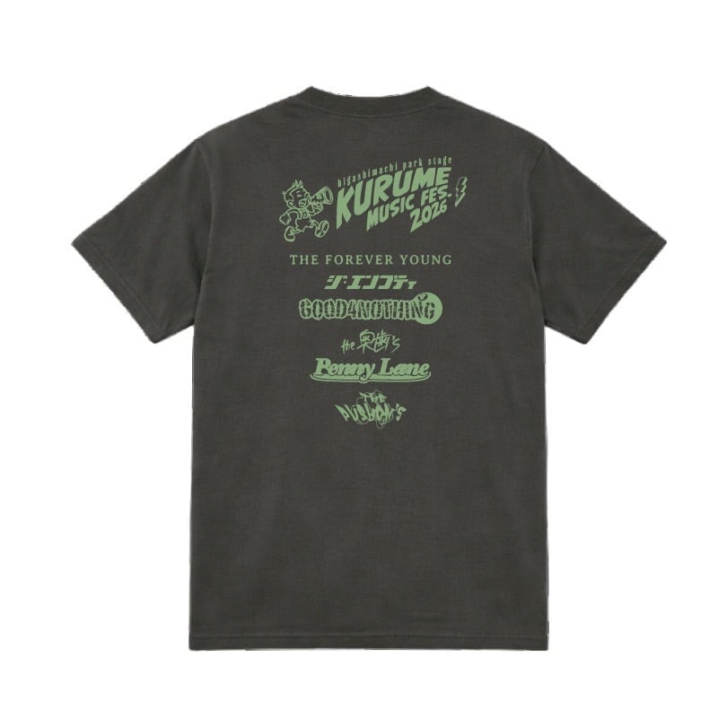 フロントに2026オリジナルデザイン、バックには東町公園ステージ出演アーティストロゴを入れた「KURUME MUSIC FES.2026」特別仕様な一枚です。